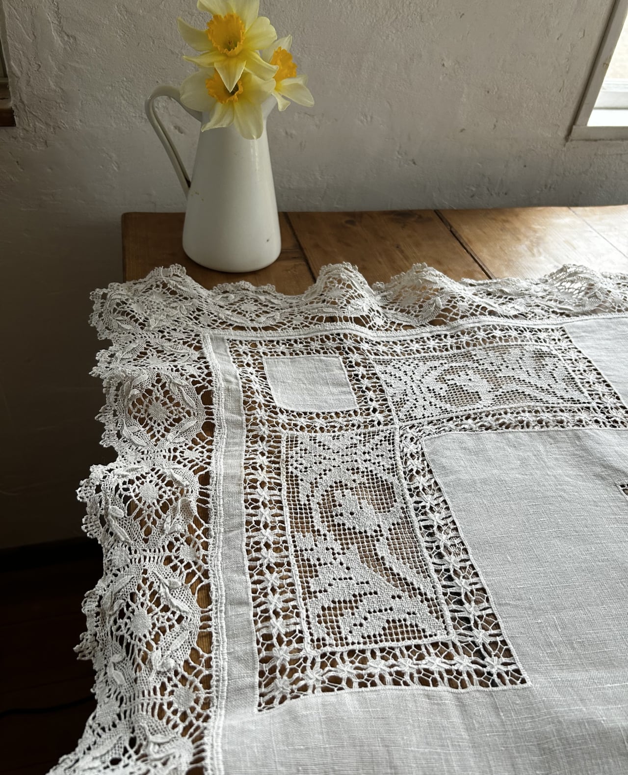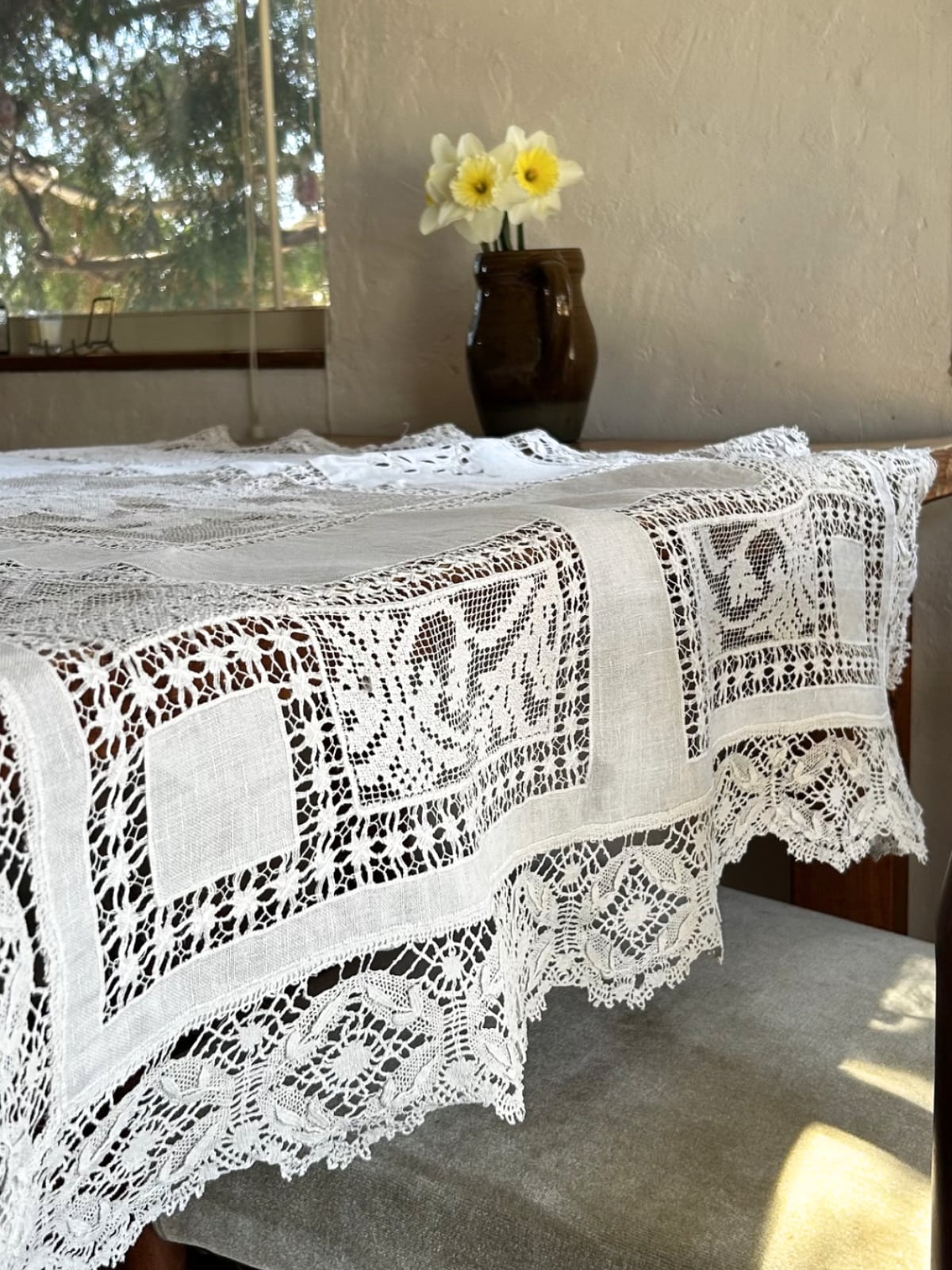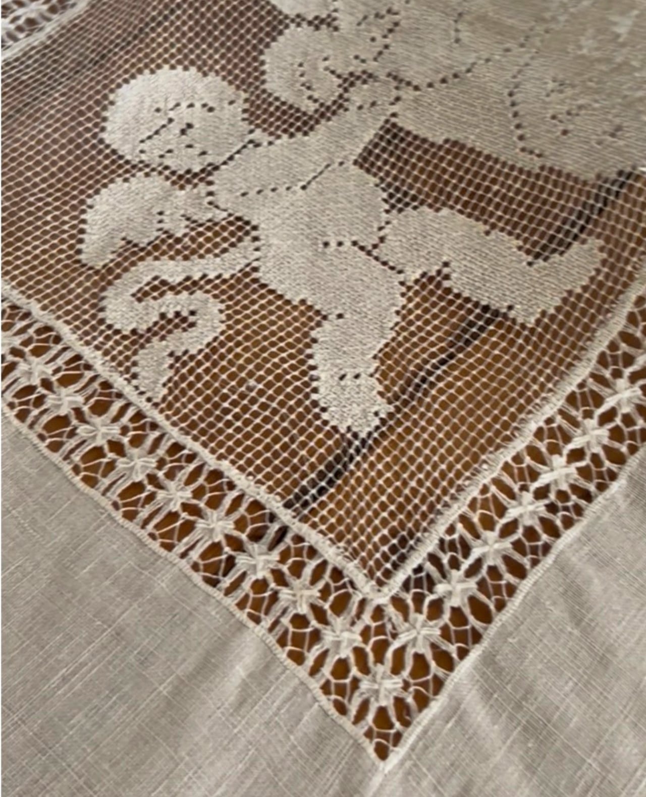 アンティークレースの中でも人気の高い、天使の模様が描かれたテーブルクロスです